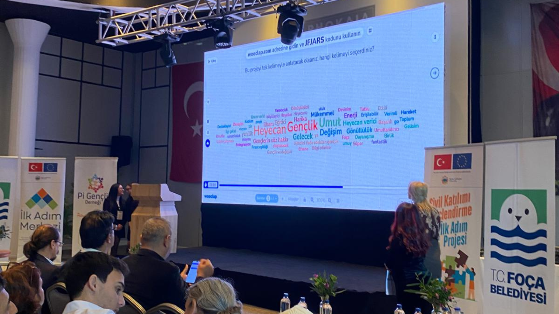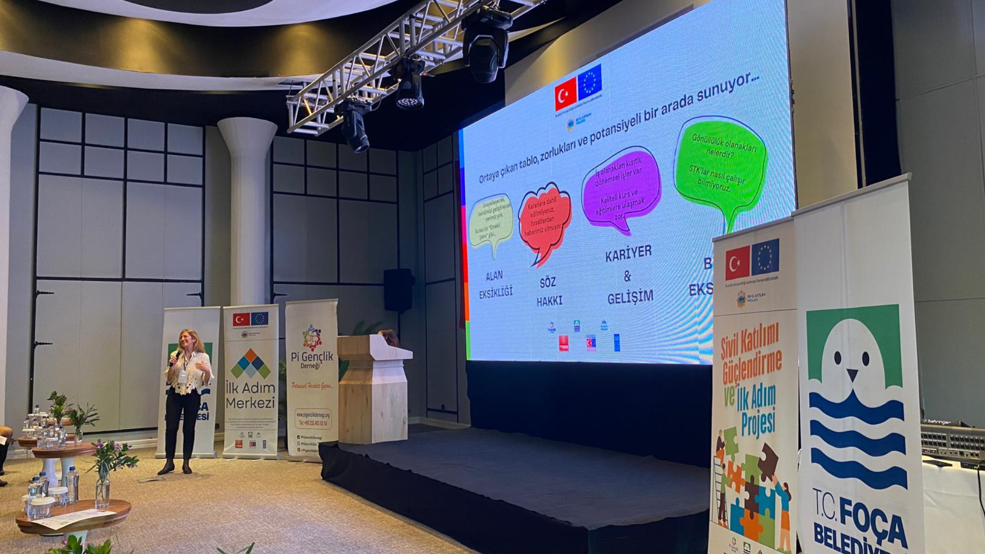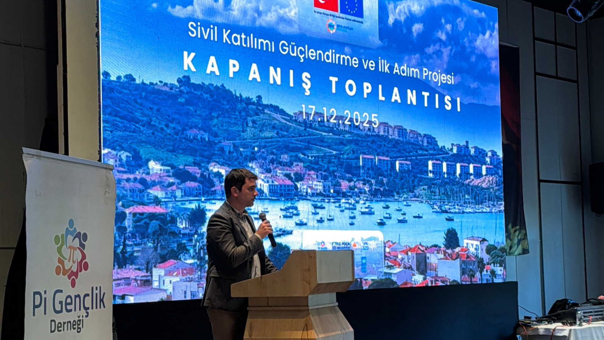 Pi Gençlik Derneği ve Foça Belediyesi ortaklığında yürütülen projenin kapanış toplantısı, Mark Warner Phokia Beach Club’ta yaklaşık ikiyüz kişinin katılımıyla gerçekleşti. Gençler, sivil toplum temsilcileri, yerel yönetim ve kamu kurumları aynı mekânda bir araya gelerek bir yılın deneyimini birlikte paylaştı. Toplantının açılış konuşmalarını Pi Gençlik Derneği Başkanı, Proje Koordinatörü Seda Şahin, Dışişleri Bakanlığı Avrupa Birliği Başkanlığı AB İşleri Uzmanı Ceyhan Çiçek, UNDP Saha Koordinatörü Serkan Gümüş ve Foça Belediye Başkanı Saniye Fıçı yaptı. Konuşmalarda, gençlerin yerel karar alma süreçlerine katılımının önemi ve kamu–STK iş birliğinin yarattığı ortak güç vurgulandı.
